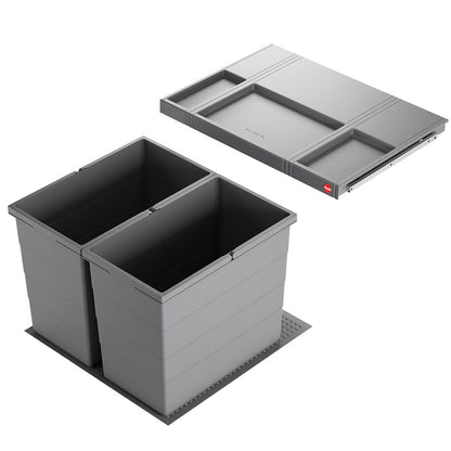 HAILO AS Allegro 350 28/28 on ihanteellinen laatikkopohjainen jätehuoltoratkaisu keittiöihin, joissa vaaditaan maksimaalista tilavuutta ja nykyaikaista toiminnallisuutta. Tämä joustava järjestelmä on suunniteltu 600 mm leveisiin kaappeihin, joissa on ulosvedettävät hyllyt, ja se sisältää kaksi 28 litran säiliötä, irrotettavan järjestelmän kannen, jossa on integroitu säilytystila, sekä innovatiivisen Allegro-luistamaton maton optimaalista vakautta varten.