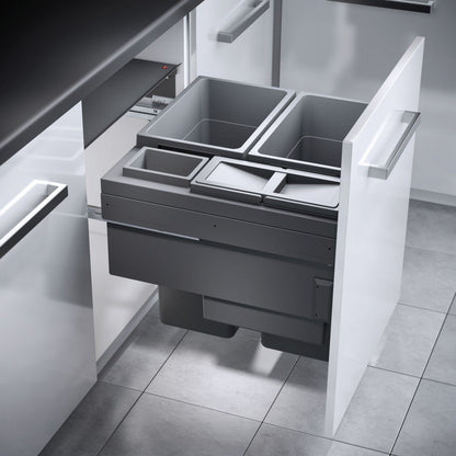 HAILO AS Euro Cargo 600 38/38/12/D/2,5 ei ole vain käytännöllinen, vaan se lisää keittiön toimivuutta ja pitää sen tyylikkäänä. Järjestelmän useat säiliöt mahdollistavat erilaisten jätteiden tehokkaan lajittelun kierrätysmateriaaleista orgaanisiin jätteisiin, mikä tekee siitä olennaisen osan modernia, ympäristötietoista keittiötä.