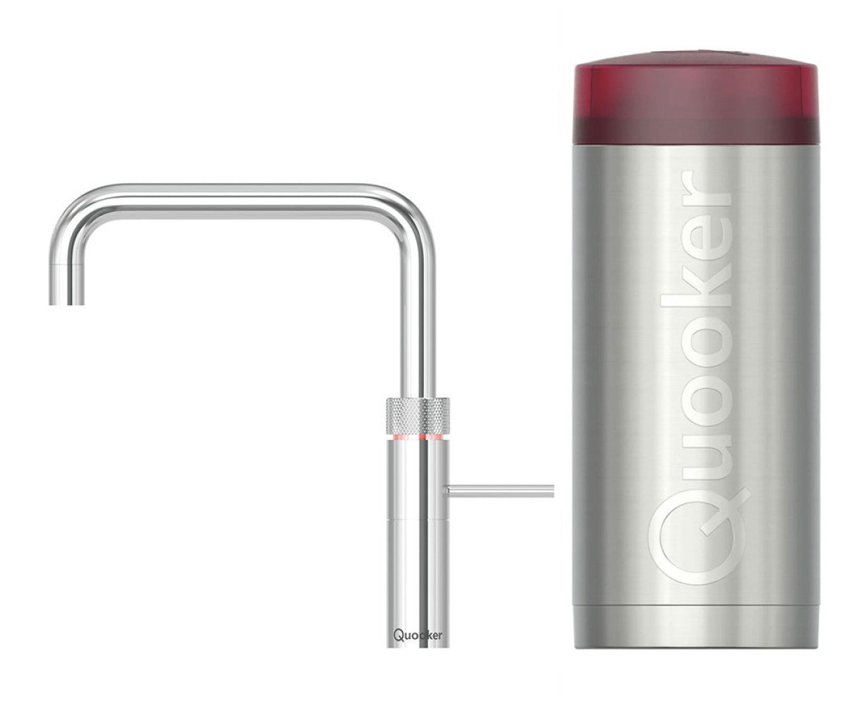 Quooker Fusion Square COMBI+ -kattilalla, kromi on tyylikäs 3-in-1-keittiöhana, joka antaa kiehuvaa, kuumaa ja kylmää vettä yhdestä minimalistisesta neliönmuotoisesta hanasta. Kiillotettu kromipinta lisää ajatonta kiiltoa, joten se sopii täydellisesti sekä klassisiin että moderneihin keittiöihin.