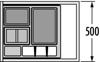 Enhance your kitchen organization with the HAILO AS Separato K 500 18/8/8/D. Specifically designed for 500 mm wide drawer cabinets, this system fits perfectly into standard kitchen and sink cabinets with sidewall thicknesses from 16 mm to 19 mm, providing a sophisticated solution for managing recycling and waste.